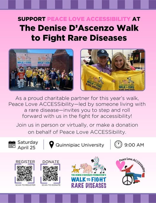 As a family living with rare disease, we know firsthand how important awareness, community, and support truly are. That’s why Peace Love ACCESSibility is proud to partner with The Denise D'Ascenzo Foundation Walk to Fight Rare Diseases.